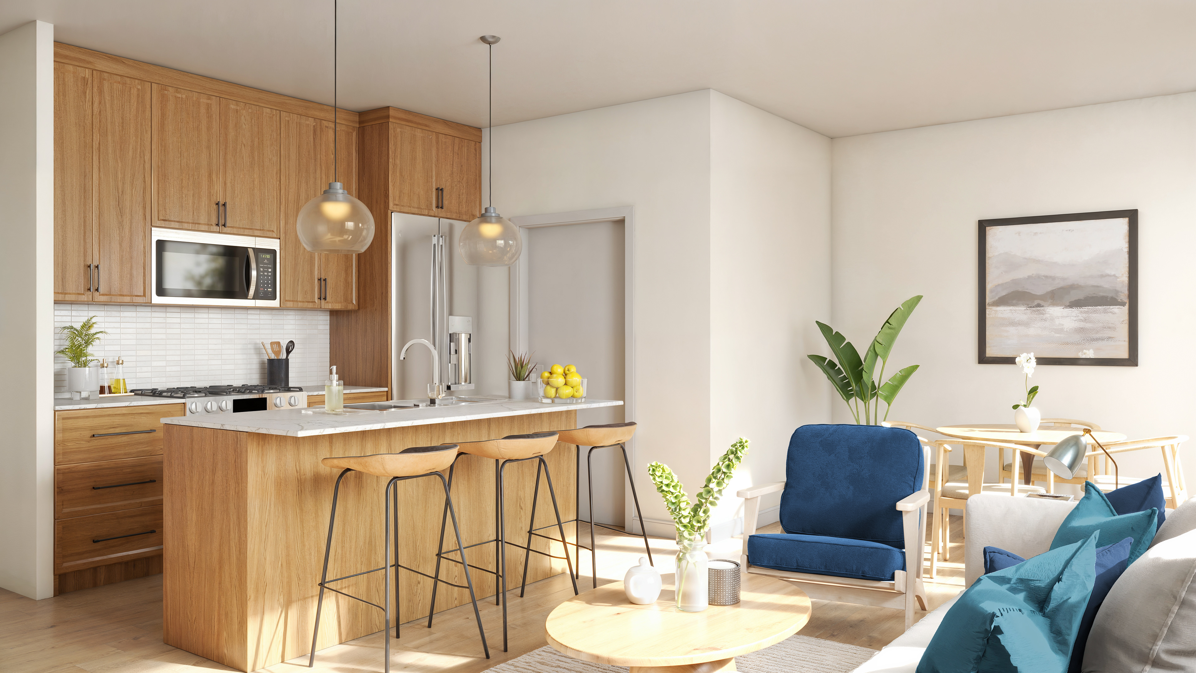 The interior renderings emphasize the material palette, furniture layout, and spatial quality specific to each unit type. By creating consistent lighting and styling across the shots, we aimed to unify the visual identity of the project while still highlighting the individuality of each space.